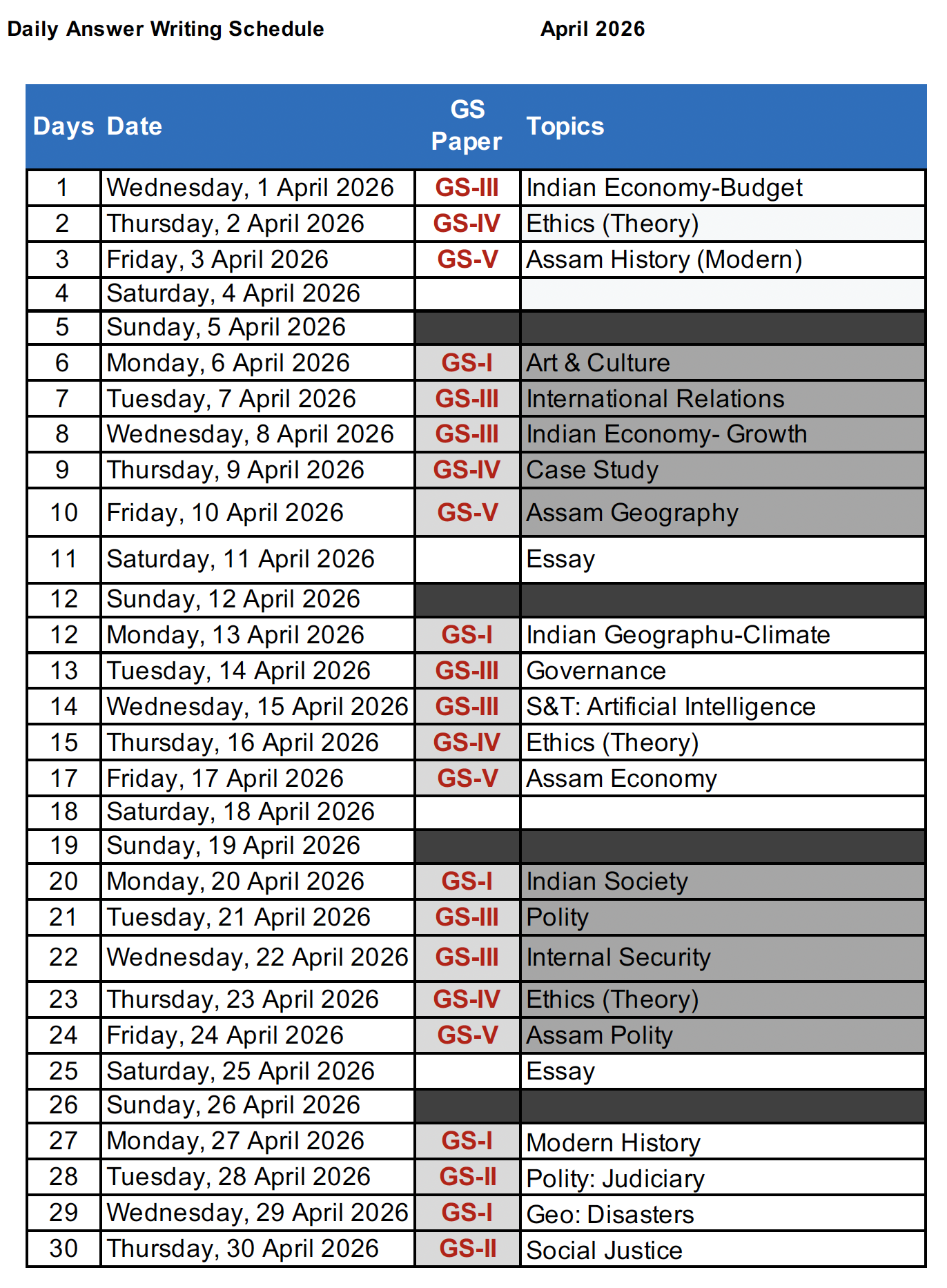 Regular Answer Writing Practice (5 days in a Week) Mon-Fri